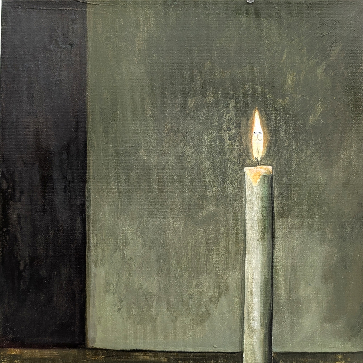 Inspiration for these paintings began with Lahav’s deep dive into their own music collection. Lahav became fascinated with vinyl after discovering a Russian bootleg of Sonic Youth’s iconic 1988 album Daydream Nation, which features the artist Gerhard Richter’s painting Kerze (Candle) on the cover. Richter’s work confronts history through a fusion of painting and photography. Similarly, Lahav’s work engages in a back-and-forth dialogue with history through a 21st-century lens, exploring the exchange of ideas in both personal and collective pasts, capturing a fleeting flicker in time.