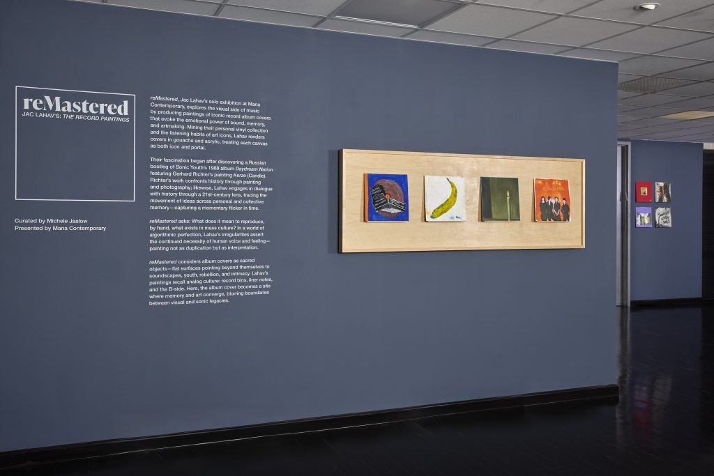 reMastered, Jac Lahav’s solo exhibition at Mana Contemporary, mines vinyl record collections to produce paintings of iconic album covers that explore the emotional power of music, memory, and the act of artmaking.